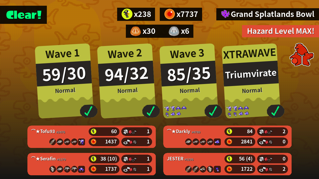 | Weapons | Grizzco Splatana Grizzco Brella Grizzco Charger Grizzco Charger | Grizzco Brella Grizzco Charger Grizzco Charger Grizzco Charger | Grizzco Splatana Grizzco Splatana Grizzco Blaster Grizzco Stringer | Grizzco Stringer Grizzco Brella Grizzco Roller Grizzco Roller |