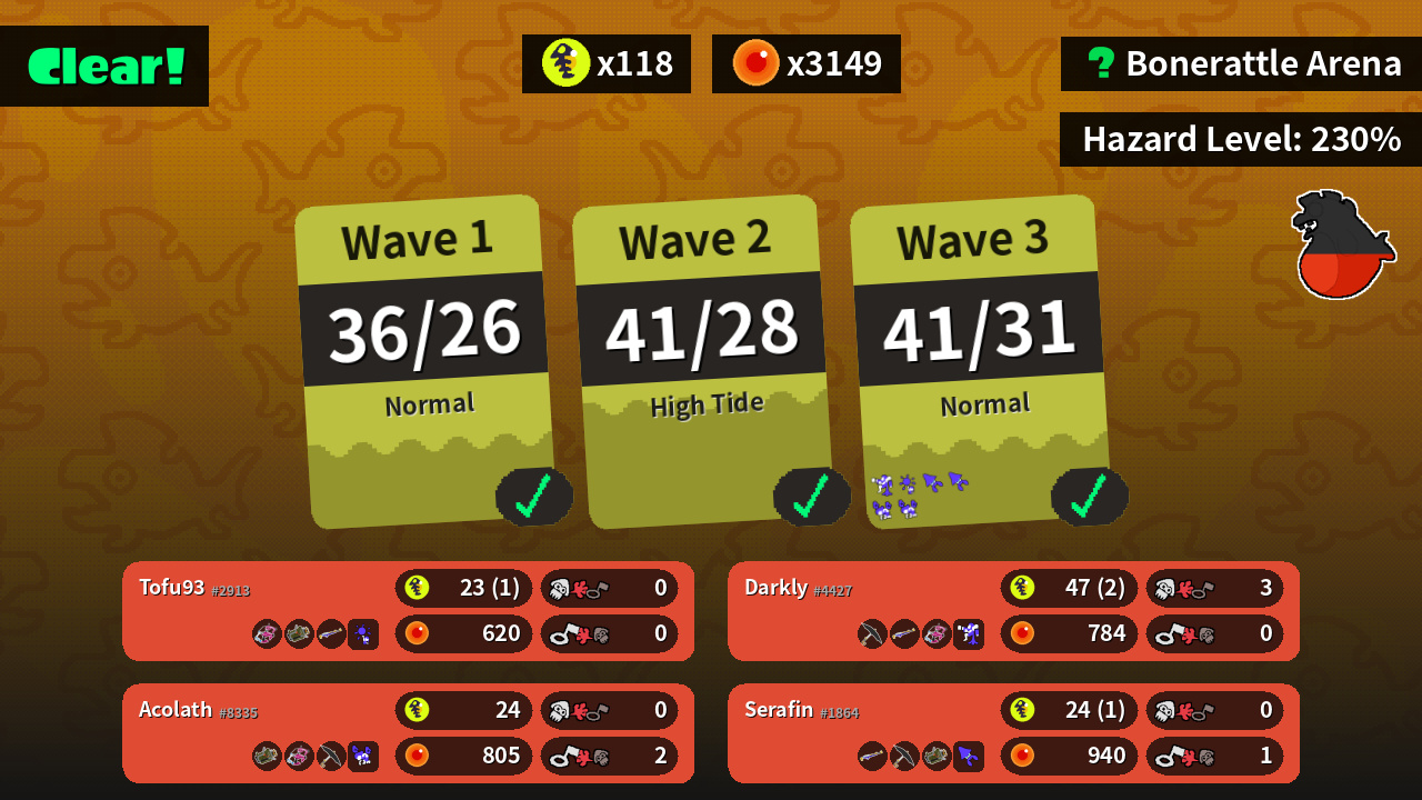 | Boss Salmonid | 13 | 19 | 23 | 15 |