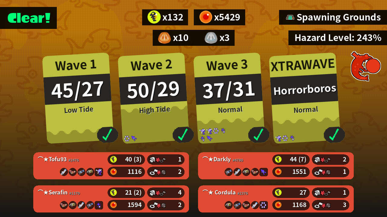 | Weapons | Mint Decavitator Hydra Splatling L-3 Nozzlenose Splash-o-matic | L-3 Nozzlenose Mint Decavitator Splash-o-matic Hydra Splatling | Splash-o-matic L-3 Nozzlenose Hydra Splatling Mint Decavitator | Hydra Splatling Splash-o-matic Mint Decavitator L-3 Nozzlenose |
