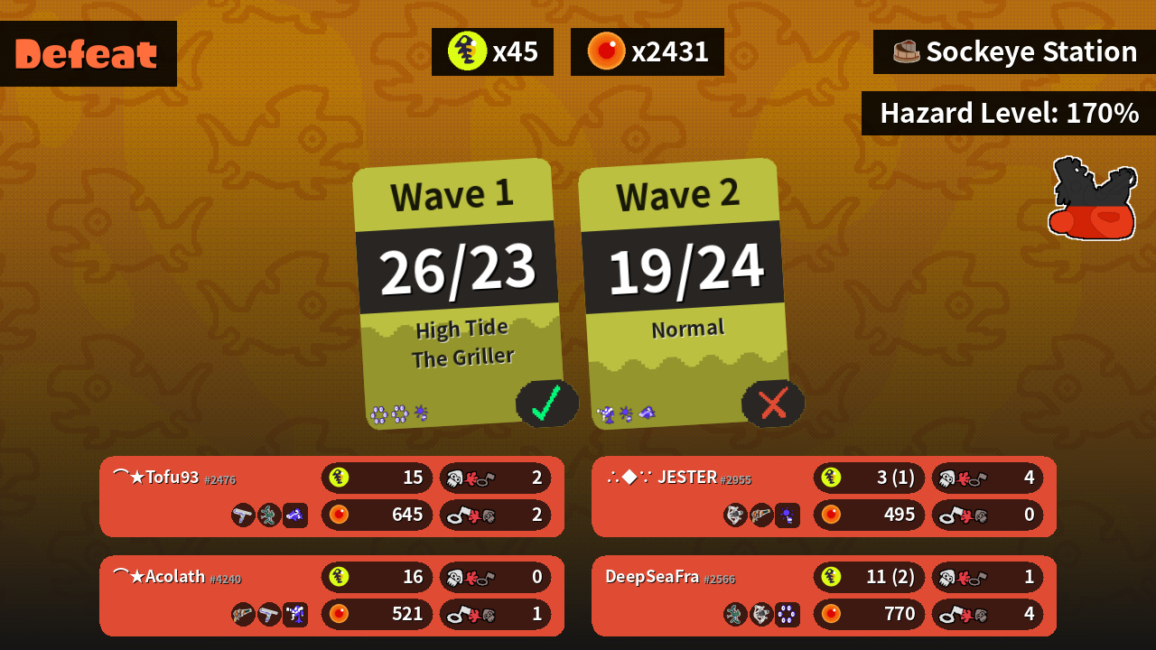 ⌒★Tofu93 | ⌒★Acolath | DeepSeaFra | ∴◆∵ JESTER | |