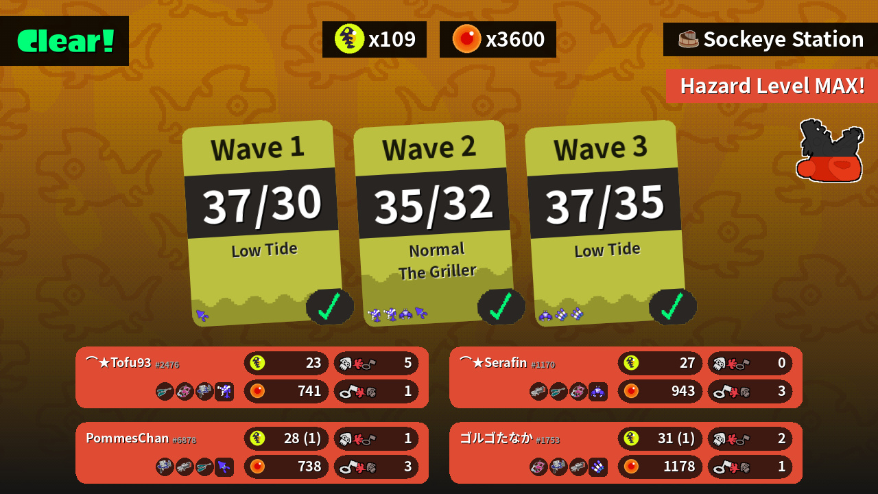 | Weapons | Jet Squelcher Dapple Dualies Clash Blaster | Dapple Dualies Clash Blaster S-BLAST '92 | Clash Blaster S-BLAST '92 Jet Squelcher | S-BLAST '92 Jet Squelcher Dapple Dualies |