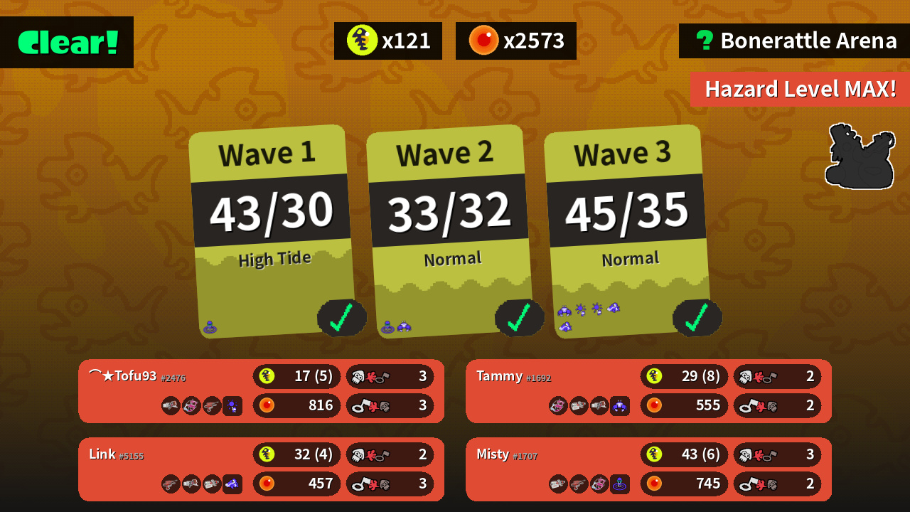 Boss Salmonid | 21 | 19 | 13 | 15 |