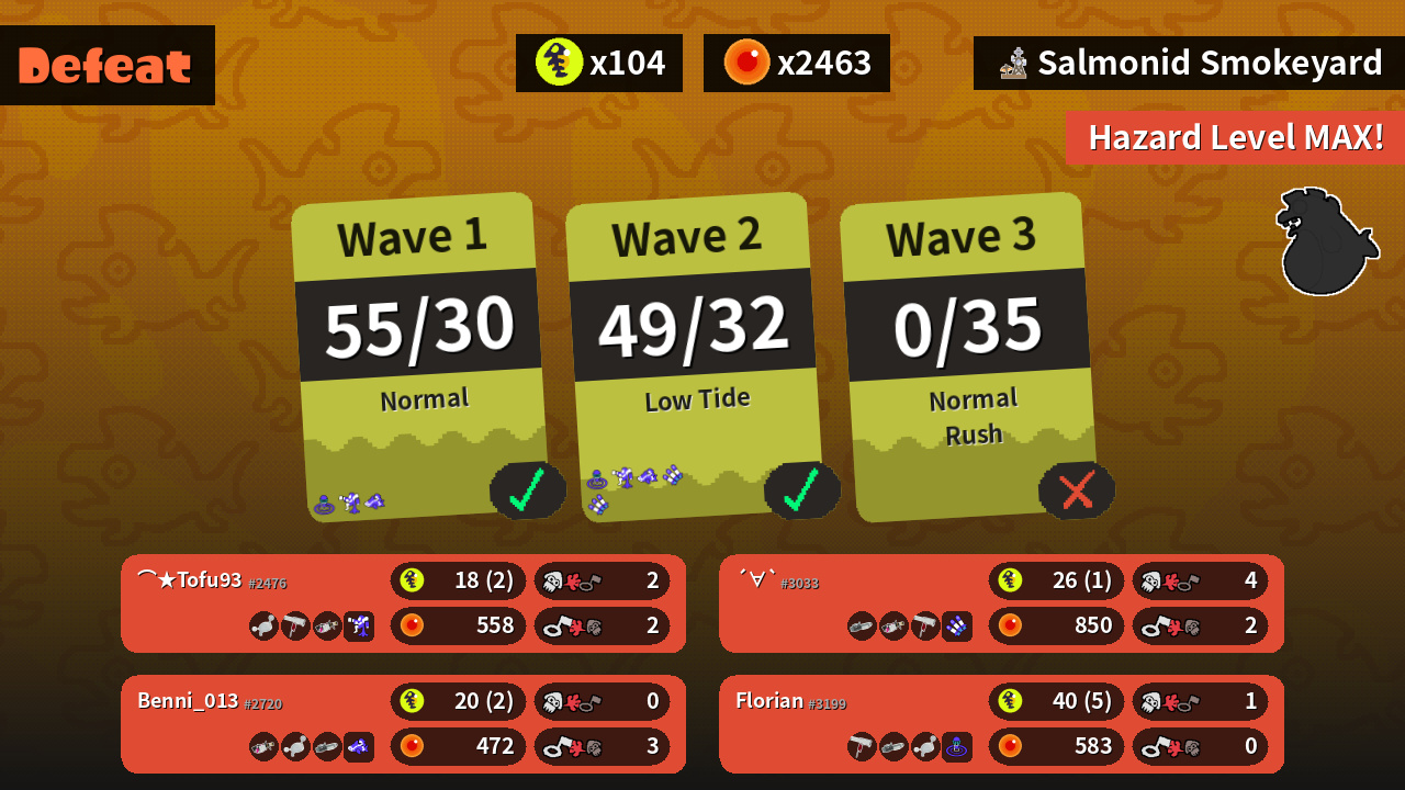 Boss Salmonid | 13 | 10 | 21 | 11 |