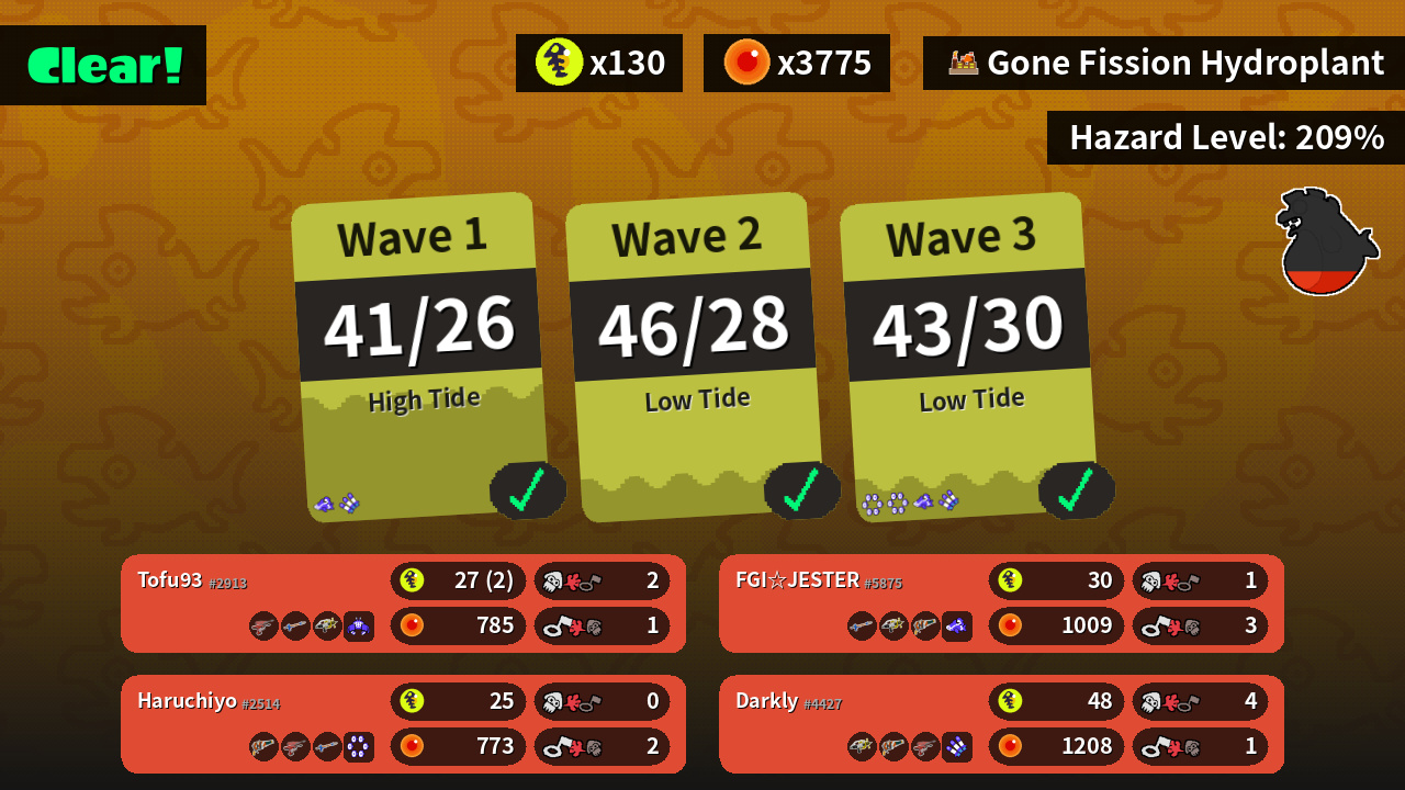| Weapons | Dualie Squelchers Snipewriter 5H Splash-o-matic | Splash-o-matic Squeezer Dualie Squelchers | Snipewriter 5H Splash-o-matic Squeezer | Squeezer Dualie Squelchers Snipewriter 5H |