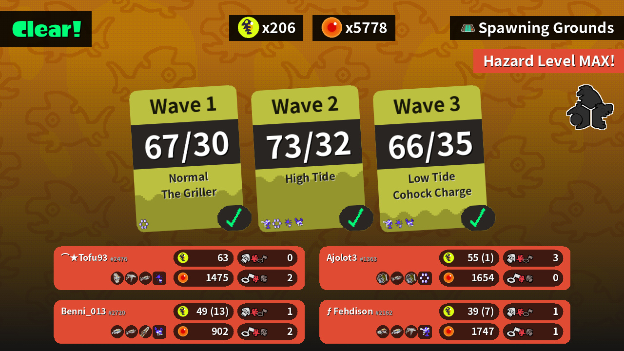 | Weapons | Grizzco Stringer Grizzco Roller Grizzco Charger | Grizzco Slosher Grizzco Charger Grizzco Slosher | Grizzco Brella Grizzco Charger Grizzco Splatana | Grizzco Blaster Grizzco Brella Grizzco Roller |