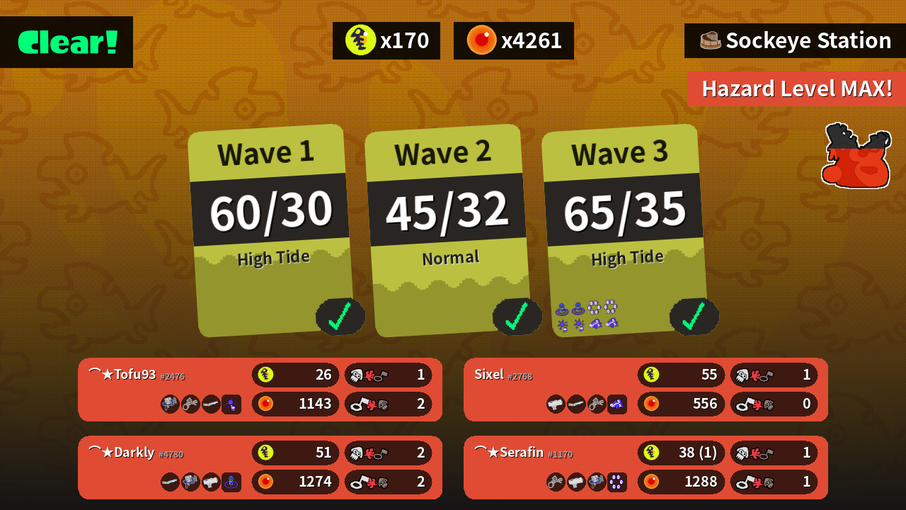 | Weapons | Clash Blaster Aerospray MG Classic Squiffer | Splattershot Jr. Classic Squiffer Aerospray MG | Classic Squiffer Clash Blaster Splattershot Jr. | Aerospray MG Splattershot Jr. Clash Blaster |