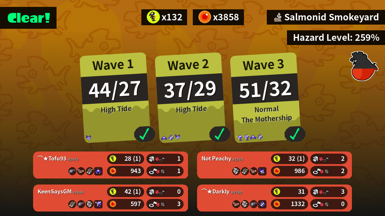 | Weapons | H-3 Nozzlenose Hydra Splatling Splat Dualies | Splat Dualies H-3 Nozzlenose REEF-LUX 450 | REEF-LUX 450 Splat Dualies Hydra Splatling | Hydra Splatling REEF-LUX 450 H-3 Nozzlenose |