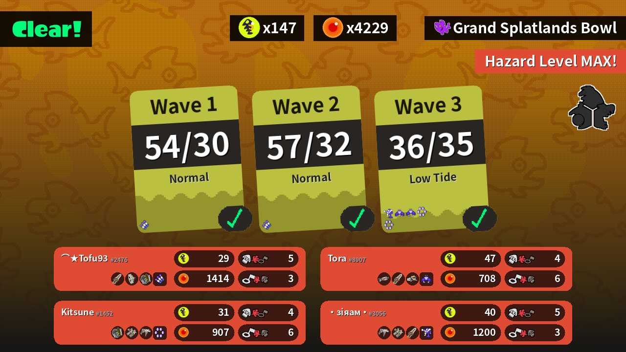 | Weapons | Grizzco Splatana Grizzco Stringer Grizzco Slosher | Grizzco Charger Grizzco Splatana Grizzco Blaster | Grizzco Roller Grizzco Dualies Grizzco Splatana | Grizzco Slosher Grizzco Dualies Grizzco Roller |