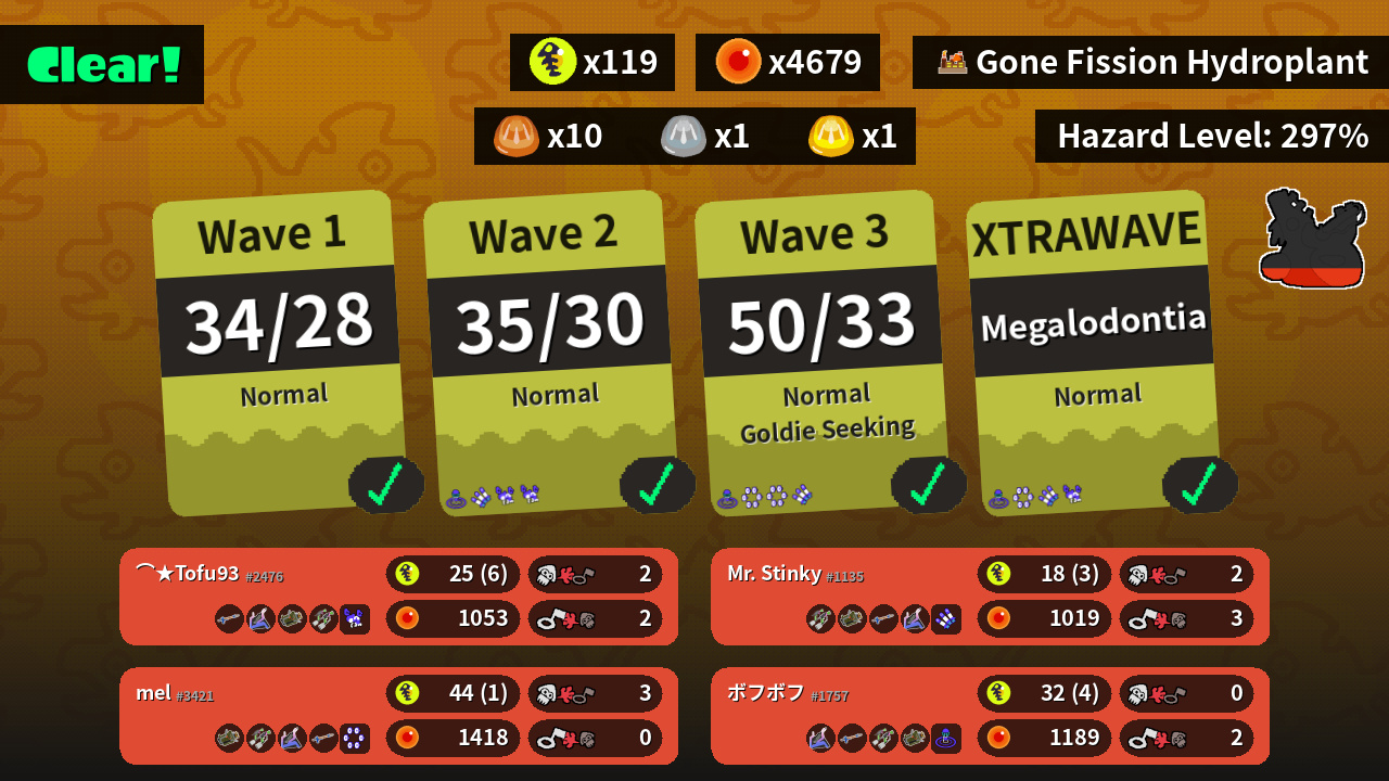 | Weapons | Snipewriter 5H Slosher Explosher Splat Dualies | Explosher Splat Dualies Slosher Snipewriter 5H | Slosher Snipewriter 5H Splat Dualies Explosher | Splat Dualies Explosher Snipewriter 5H Slosher |