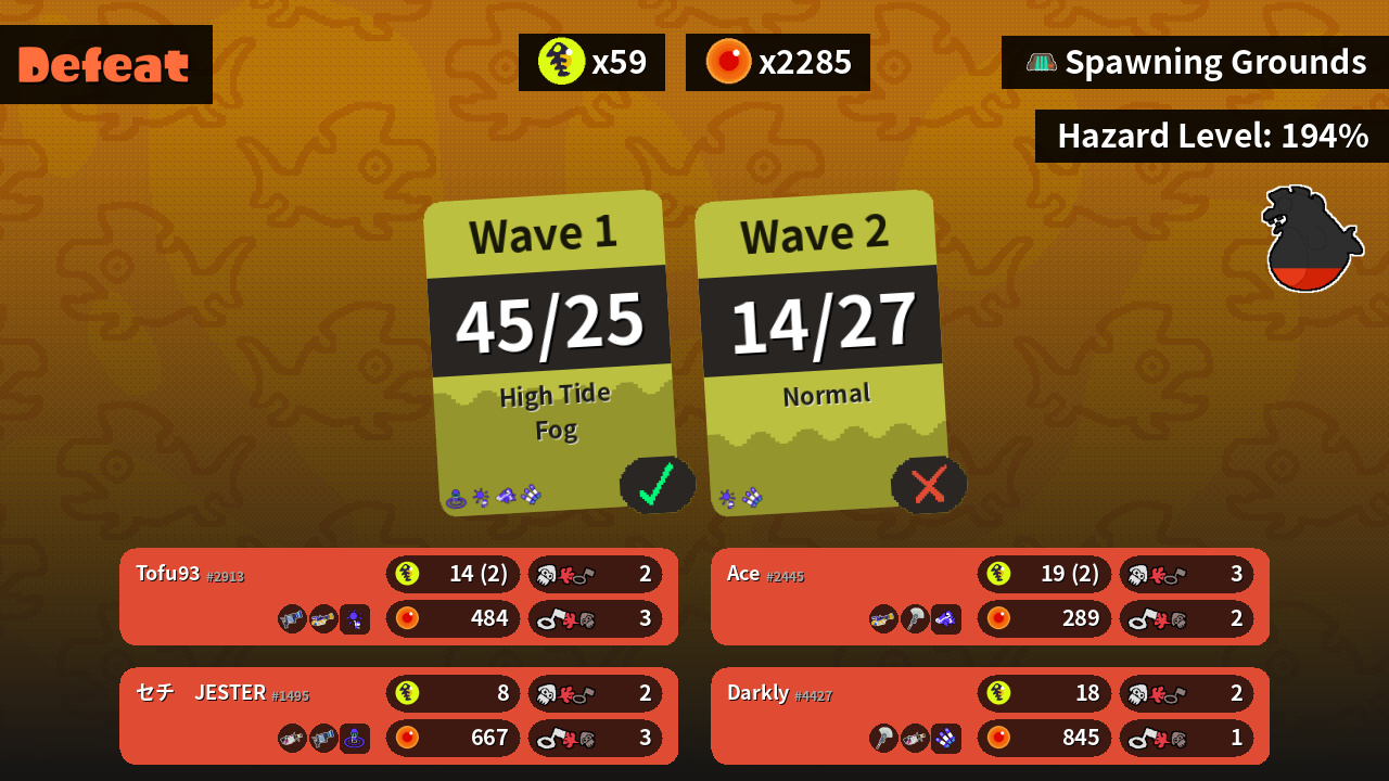 | Boss Salmonid | 8 | 5 | 14 | 2 |