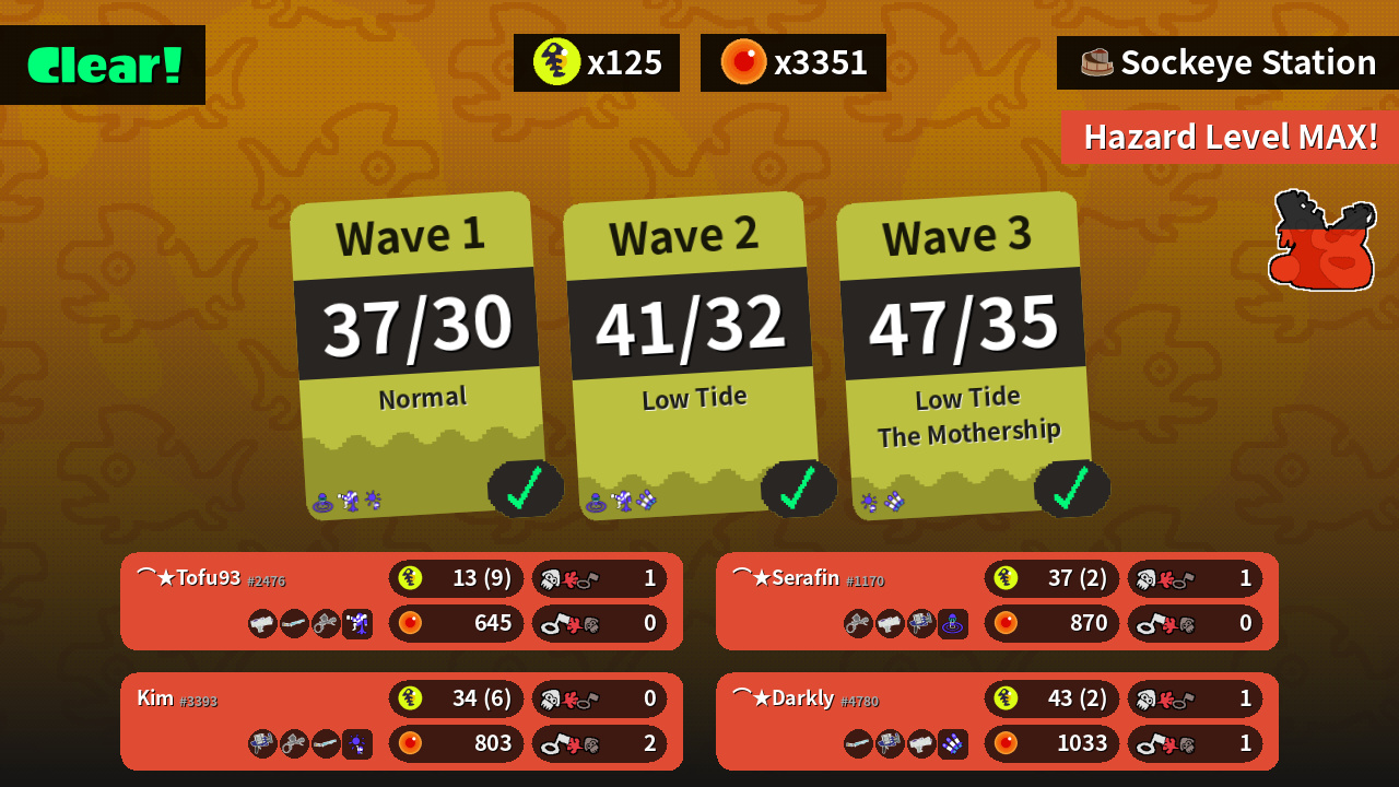 | Weapons | Splattershot Jr. Classic Squiffer Aerospray MG | Classic Squiffer Clash Blaster Splattershot Jr. | Aerospray MG Splattershot Jr. Clash Blaster | Clash Blaster Aerospray MG Classic Squiffer |