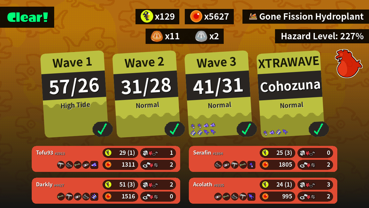 | Weapons | Dynamo Roller Bloblobber Bamboozler 14 Mk I .96 Gal | Bamboozler 14 Mk I Dynamo Roller .96 Gal Bloblobber | Bloblobber .96 Gal Dynamo Roller Bamboozler 14 Mk I | .96 Gal Bamboozler 14 Mk I Bloblobber Dynamo Roller |