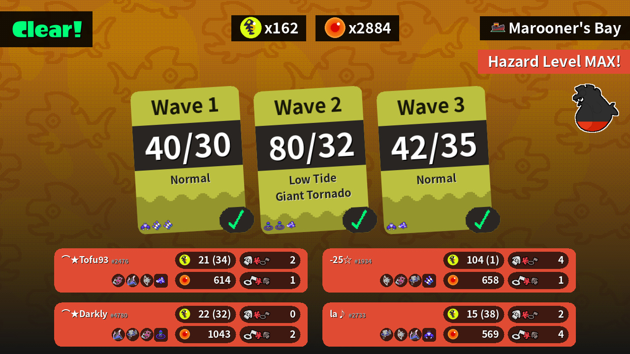 | Weapons | Dapple Dualies Slosher Tri-Stringer | Tri-Stringer Dapple Dualies Clash Blaster | Slosher Clash Blaster Dapple Dualies | Clash Blaster Tri-Stringer Slosher |