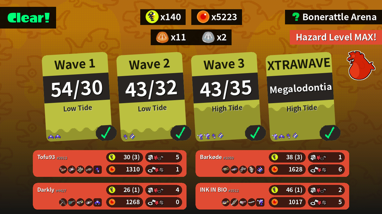 | Boss Salmonid | 23 | 23 | 17 | 30 |