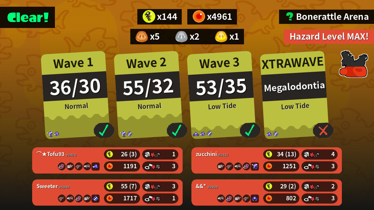 | Weapons | Dapple Dualies Heavy Edit Splatling Dualie Squelchers Blaster | Dualie Squelchers Blaster Dapple Dualies Heavy Edit Splatling | Heavy Edit Splatling Dualie Squelchers Blaster Dapple Dualies | Blaster Dapple Dualies Heavy Edit Splatling Dualie Squelchers |
