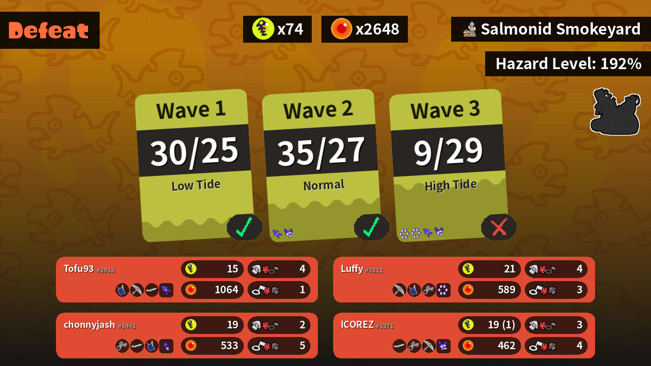 | Weapons | Tri-Slosher Splat Brella Classic Squiffer | Splat Brella Tri-Slosher Aerospray MG | Aerospray MG Classic Squiffer Tri-Slosher | Classic Squiffer Aerospray MG Splat Brella |