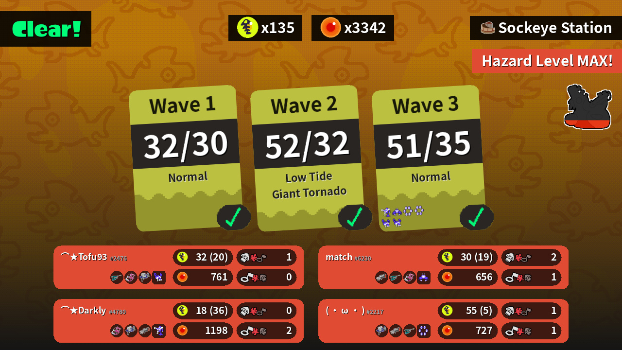 | Weapons | Jet Squelcher Dapple Dualies Clash Blaster | Clash Blaster S-BLAST '92 Jet Squelcher | S-BLAST '92 Jet Squelcher Dapple Dualies | Dapple Dualies Clash Blaster S-BLAST '92 |