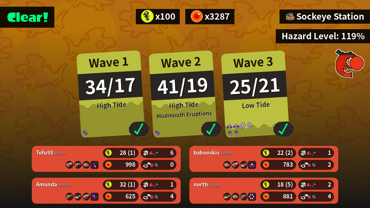 | Weapons | Rapid Blaster Squeezer Dread Wringer | Squeezer Mini Splatling Rapid Blaster | Dread Wringer Rapid Blaster Mini Splatling | Mini Splatling Dread Wringer Squeezer |