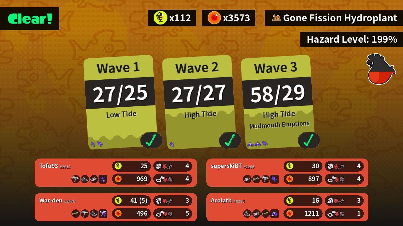 | Weapons | Dynamo Roller Bloblobber .96 Gal | Bamboozler 14 Mk I Dynamo Roller Bloblobber | .96 Gal Bamboozler 14 Mk I Dynamo Roller | Bloblobber .96 Gal Bamboozler 14 Mk I |