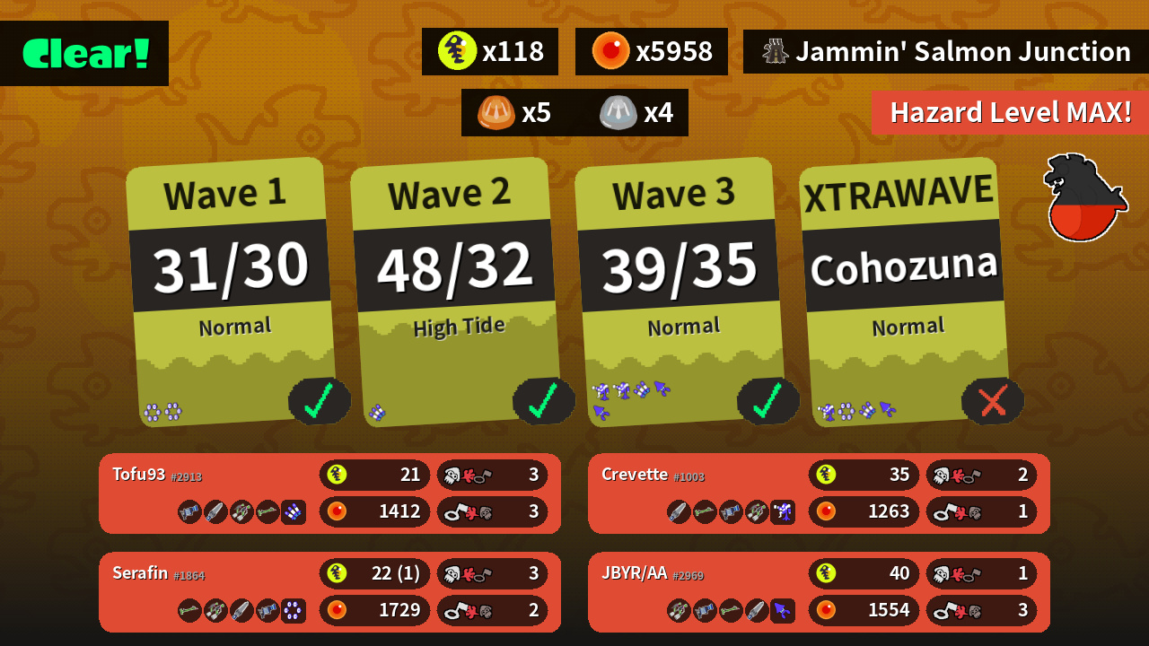 | Boss Salmonid | 27 | 26 | 34 | 25 |