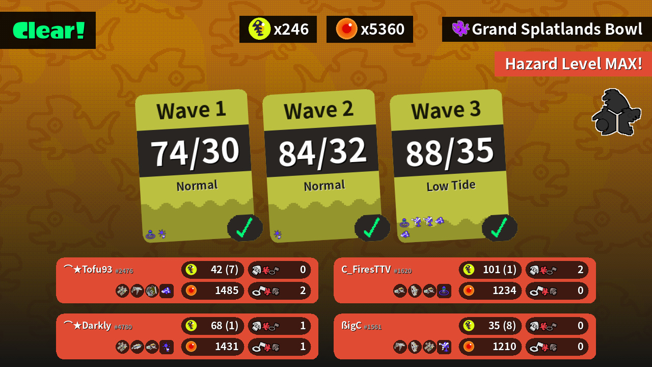 | Weapons | Grizzco Dualies Grizzco Roller Grizzco Slosher | Grizzco Blaster Grizzco Stringer Grizzco Blaster | Grizzco Dualies Grizzco Brella Grizzco Blaster | Grizzco Roller Grizzco Stringer Grizzco Dualies |