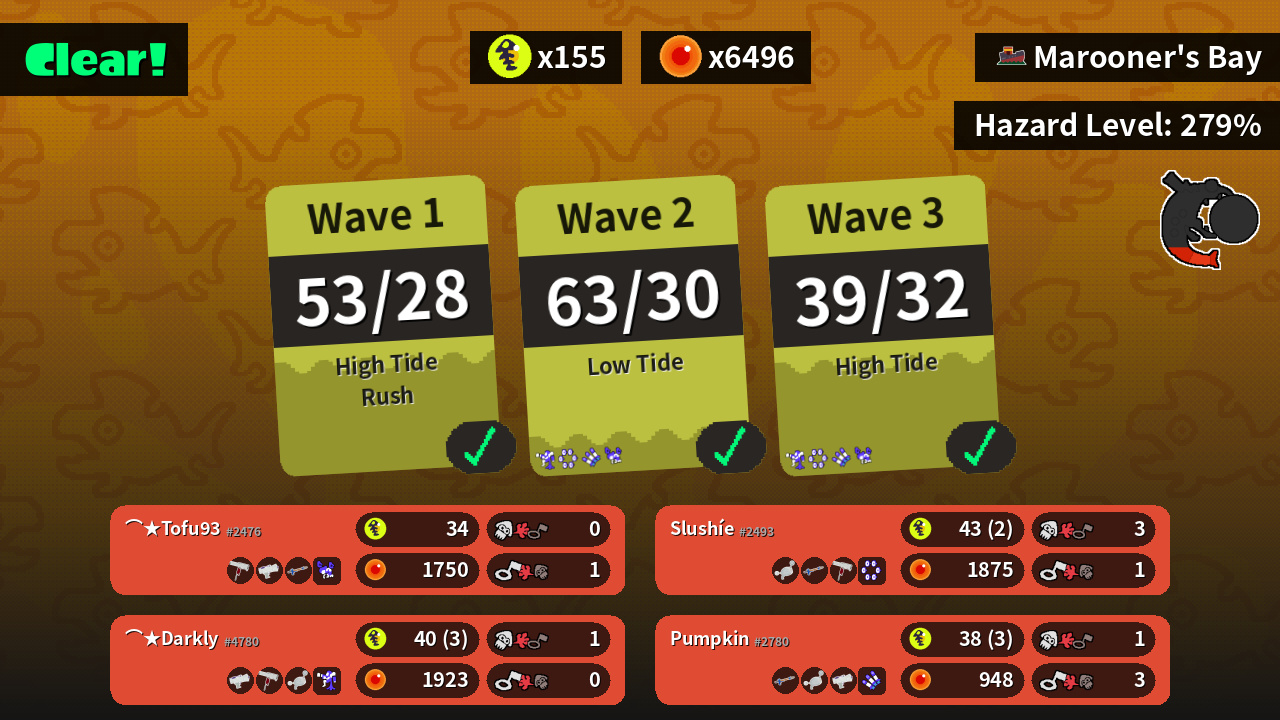 | Weapons | Flingza Roller Splattershot Jr. Snipewriter 5H | Luna Blaster Snipewriter 5H Flingza Roller | Splattershot Jr. Flingza Roller Luna Blaster | Snipewriter 5H Luna Blaster Splattershot Jr. |