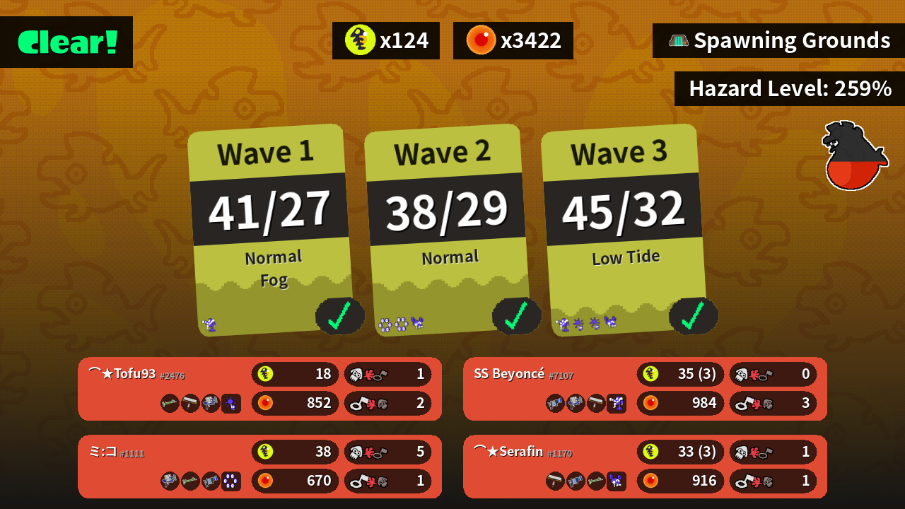 | Weapons | Bamboozler 14 Mk I Carbon Roller Clash Blaster | Clash Blaster Bamboozler 14 Mk I L-3 Nozzlenose | L-3 Nozzlenose Clash Blaster Carbon Roller | Carbon Roller L-3 Nozzlenose Bamboozler 14 Mk I |