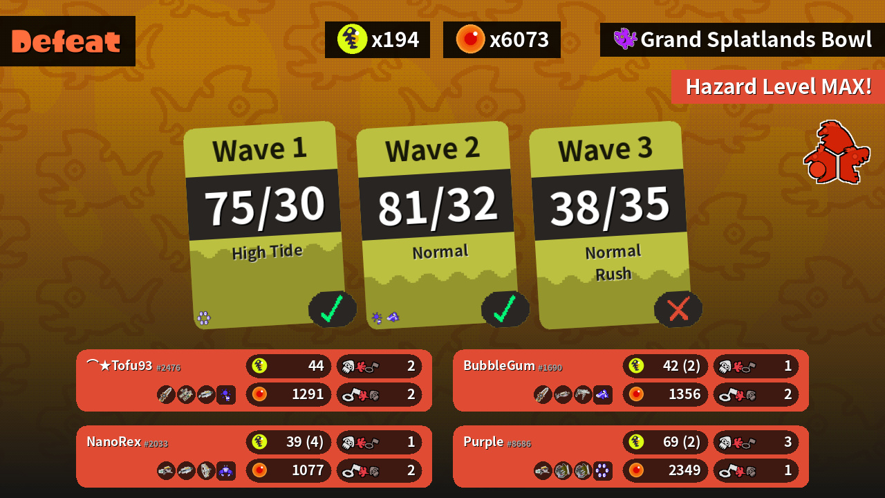 | Special | Booyah Bomb (1) | Killer Wail 5.1 (1) | Reefslider (1) | Crab Tank (0) |
