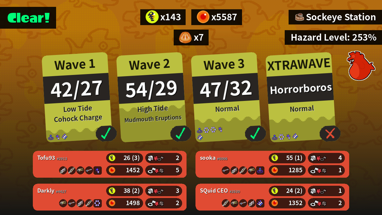 | Weapons | Dark Tetra Dualies Splatana Wiper Sploosh-o-matic Snipewriter 5H | Snipewriter 5H Dark Tetra Dualies Splatana Wiper Sploosh-o-matic | Sploosh-o-matic Snipewriter 5H Dark Tetra Dualies Splatana Wiper | Splatana Wiper Sploosh-o-matic Snipewriter 5H Dark Tetra Dualies |