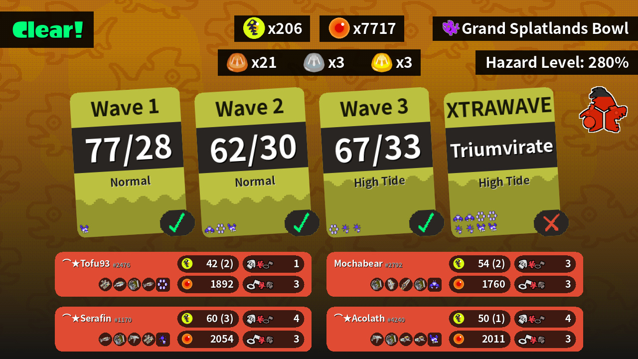 | Weapons | Grizzco Dualies Grizzco Brella Grizzco Slosher Grizzco Charger | Grizzco Charger Grizzco Slosher Grizzco Roller Grizzco Dualies | Grizzco Slosher Grizzco Stringer Grizzco Splatana Grizzco Slosher | Grizzco Roller Grizzco Slosher Grizzco Blaster Grizzco Blaster |