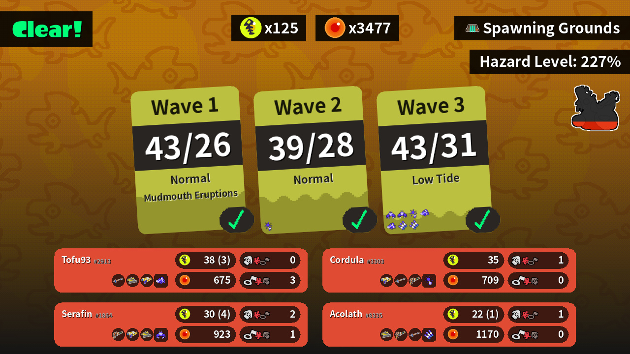 | Weapons | Snipewriter 5H Dread Wringer Splattershot | Splattershot Snipewriter 5H Squeezer | Squeezer Splattershot Dread Wringer | Dread Wringer Squeezer Snipewriter 5H |
