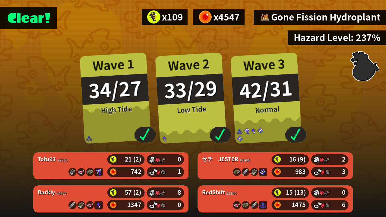 | Boss Salmonid | 17 | 21 | 13 | 16 |