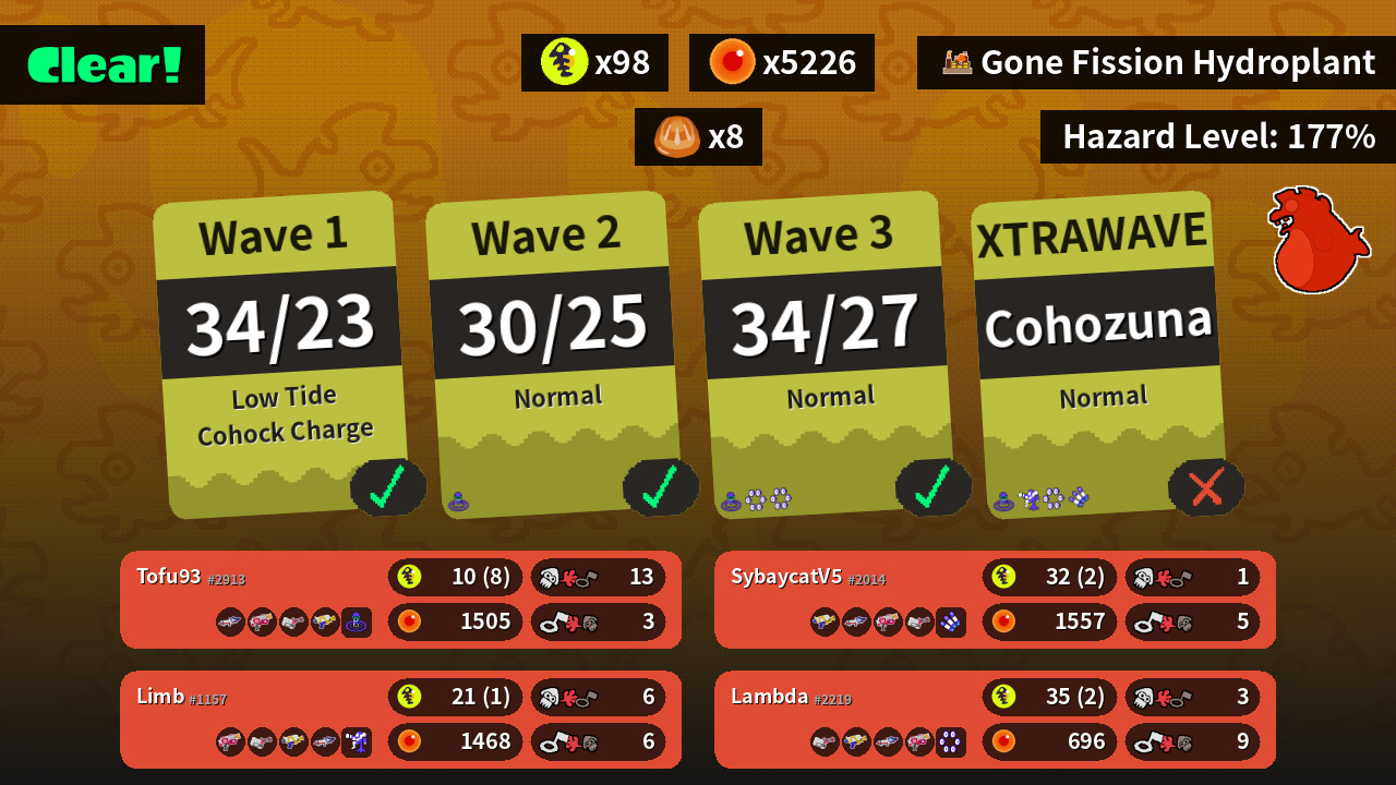 | Weapons | Splattershot Pro Rapid Blaster Heavy Splatling Splattershot | Heavy Splatling Splattershot Splattershot Pro Rapid Blaster | Splattershot Splattershot Pro Rapid Blaster Heavy Splatling | Rapid Blaster Heavy Splatling Splattershot Splattershot Pro |