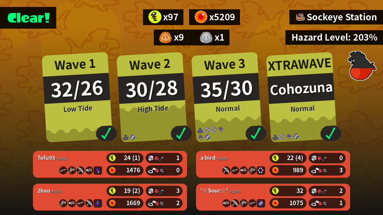 | Boss Salmonid | 21 | 21 | 12 | 20 |