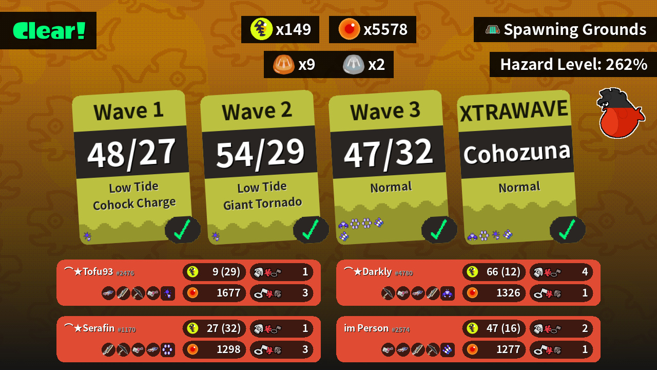 | Weapons | Splattershot Pro Splatana Wiper Undercover Brella Heavy Splatling | Undercover Brella Heavy Splatling Splattershot Pro Splatana Wiper | Heavy Splatling Splattershot Pro Splatana Wiper Undercover Brella | Splatana Wiper Undercover Brella Heavy Splatling Splattershot Pro |