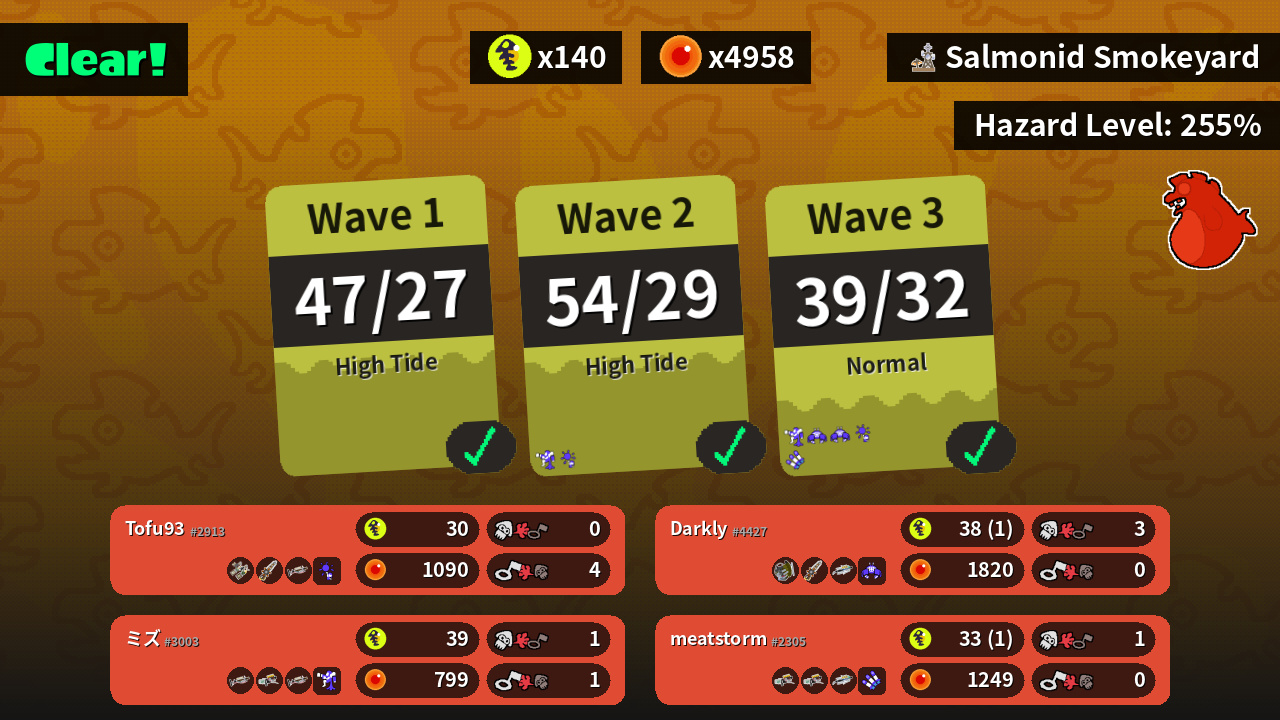 | Weapons | Grizzco Dualies Grizzco Splatana Grizzco Charger | Grizzco Charger Grizzco Blaster Grizzco Charger | Grizzco Slosher Grizzco Splatana Grizzco Brella | Grizzco Blaster Grizzco Blaster Grizzco Brella |
