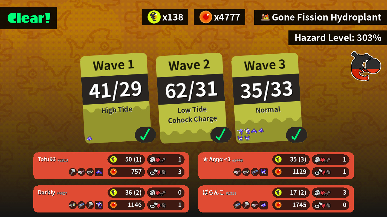 | Weapons | Painbrush Heavy Splatling Splattershot Nova | Splattershot Nova L-3 Nozzlenose Painbrush | Heavy Splatling Splattershot Nova L-3 Nozzlenose | L-3 Nozzlenose Painbrush Heavy Splatling |