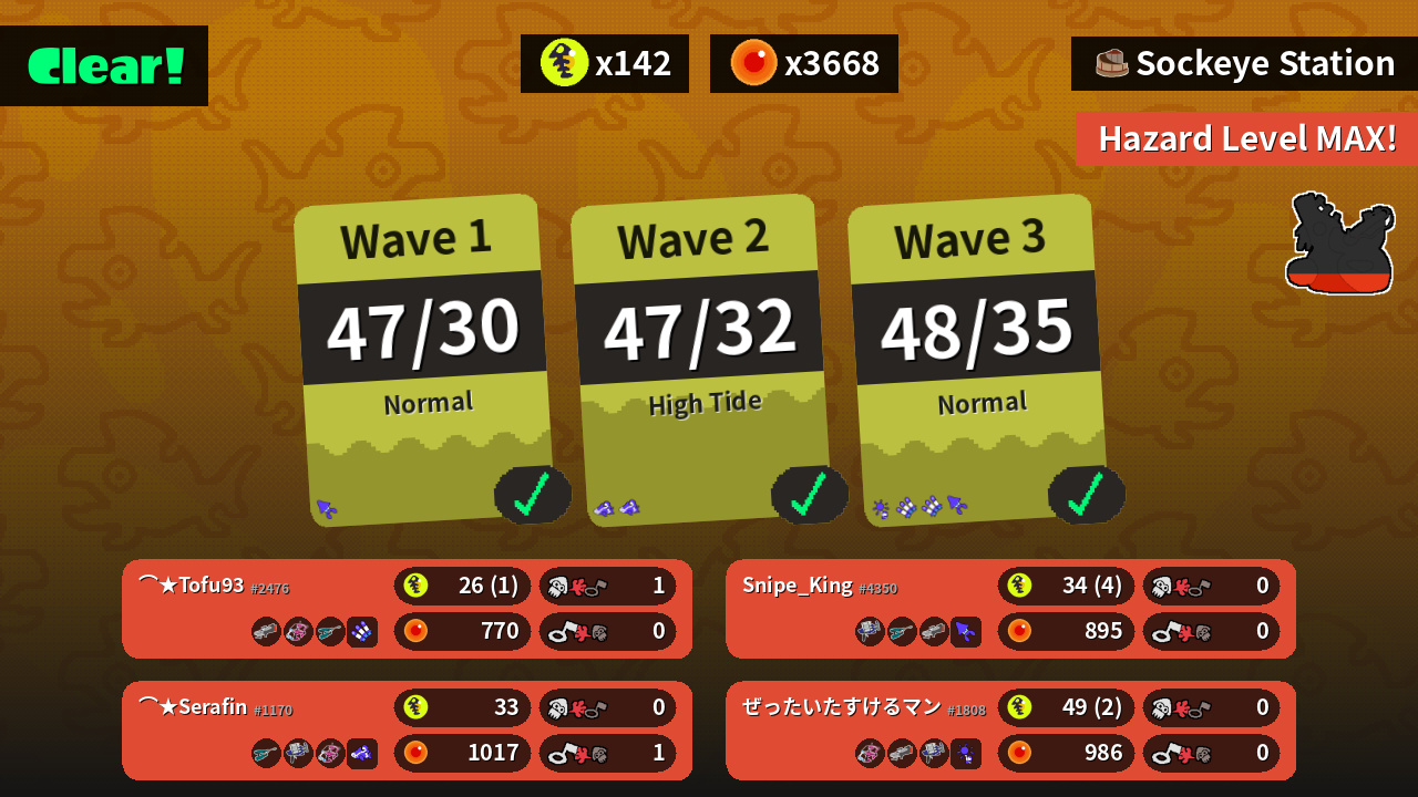 ⌒★Tofu93 | ぜったいたすけるマン | Snipe_King | ⌒★Serafin | |