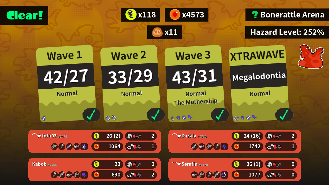 | Boss Salmonid | 13 | 18 | 13 | 21 |