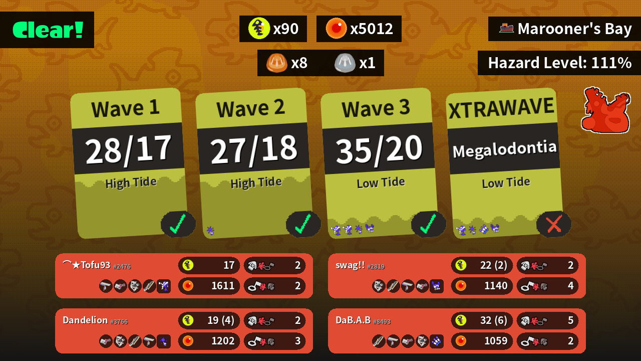 | Weapons | Splat Roller Heavy Splatling REEF-LUX 450 Splatana Wiper | Splatana Wiper Splat Roller Heavy Splatling REEF-LUX 450 | REEF-LUX 450 Splatana Wiper Splat Roller Heavy Splatling | Heavy Splatling REEF-LUX 450 Splatana Wiper Splat Roller |