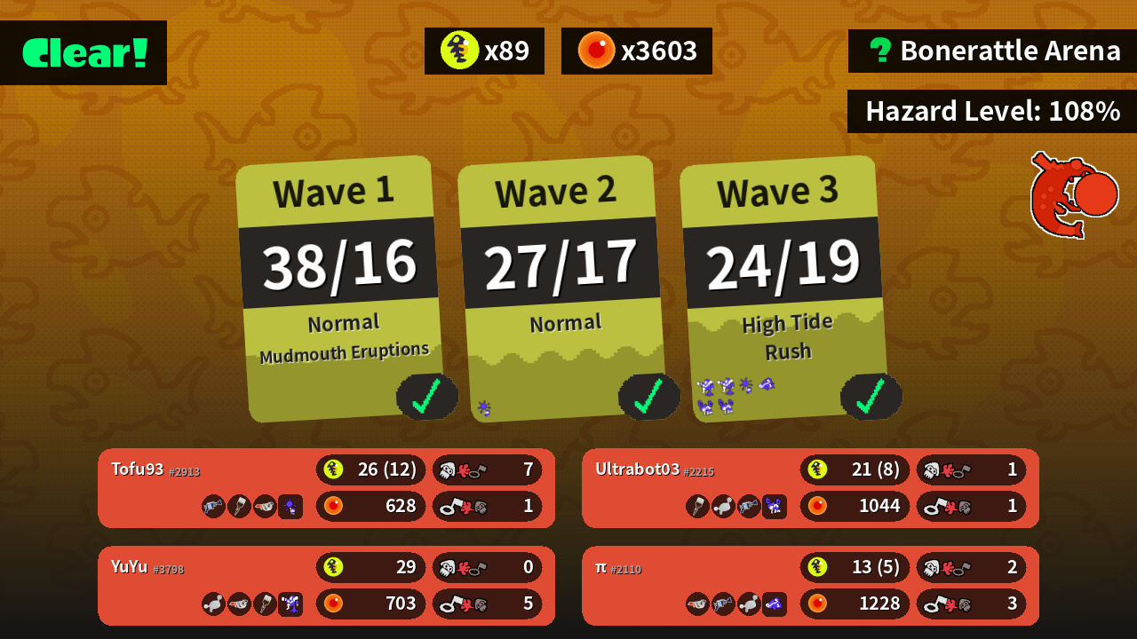 | Weapons | H-3 Nozzlenose Octobrush Goo Tuber | Luna Blaster Goo Tuber Octobrush | Octobrush Luna Blaster H-3 Nozzlenose | Goo Tuber H-3 Nozzlenose Luna Blaster |