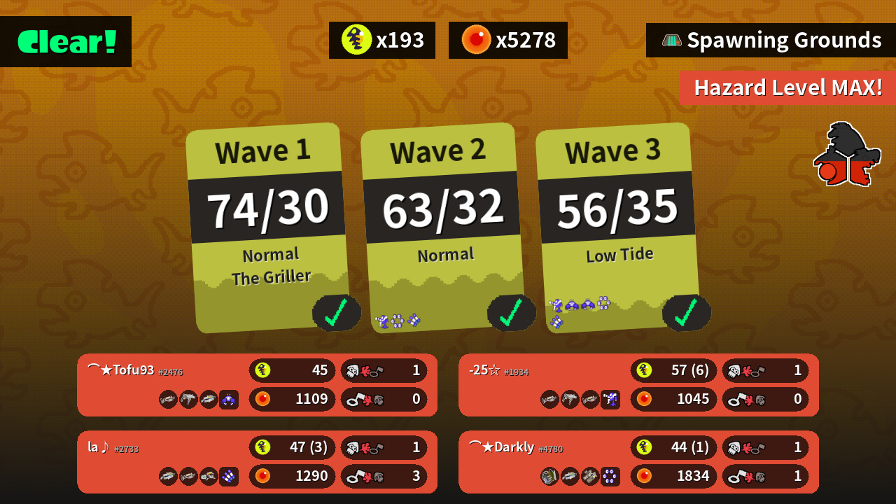 | Weapons | Grizzco Charger Grizzco Roller Grizzco Brella | Grizzco Charger Grizzco Roller Grizzco Charger | Grizzco Brella Grizzco Charger Grizzco Blaster | Grizzco Slosher Grizzco Brella Grizzco Dualies |