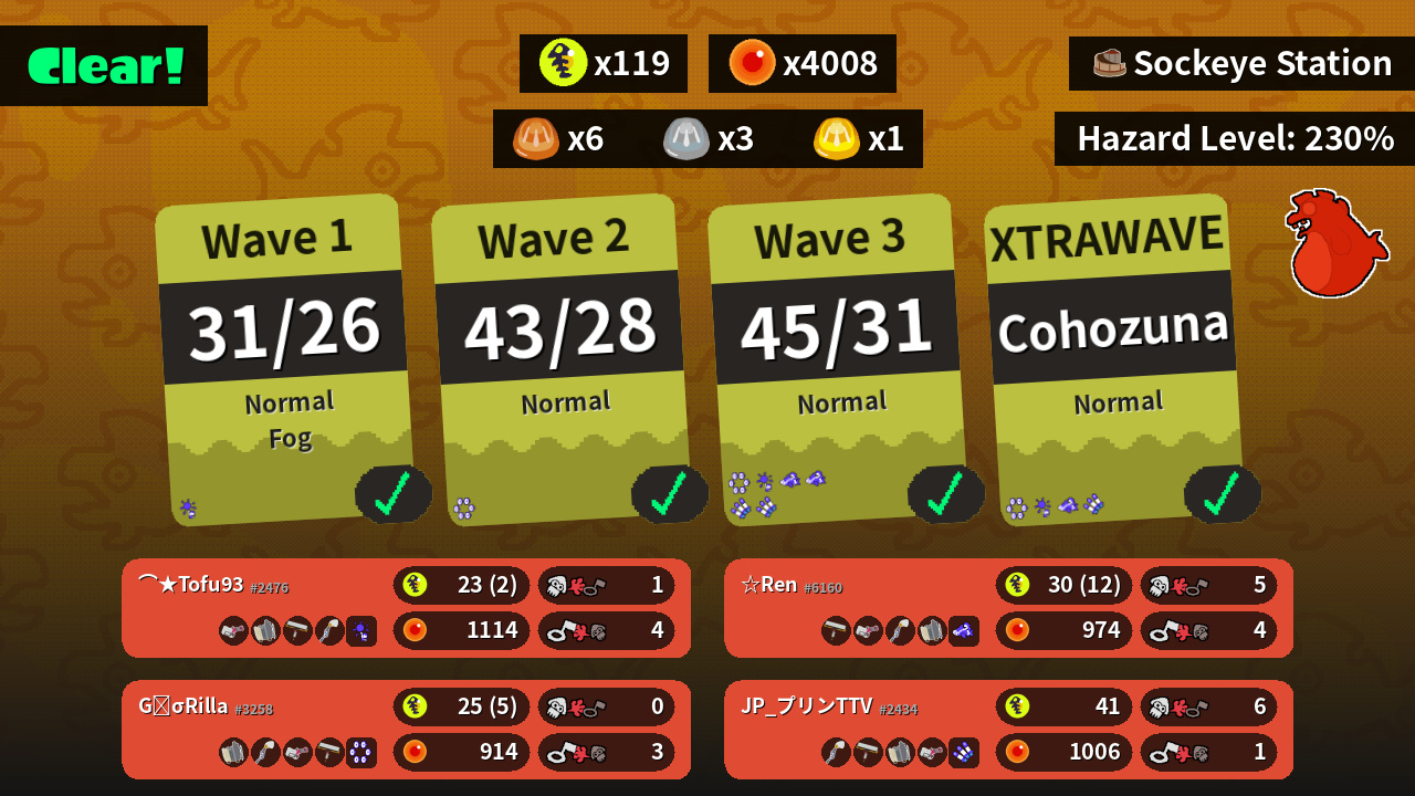 | Weapons | Heavy Splatling Sloshing Machine Carbon Roller Inkbrush | Inkbrush Carbon Roller Sloshing Machine Heavy Splatling | Carbon Roller Heavy Splatling Inkbrush Sloshing Machine | Sloshing Machine Inkbrush Heavy Splatling Carbon Roller |
