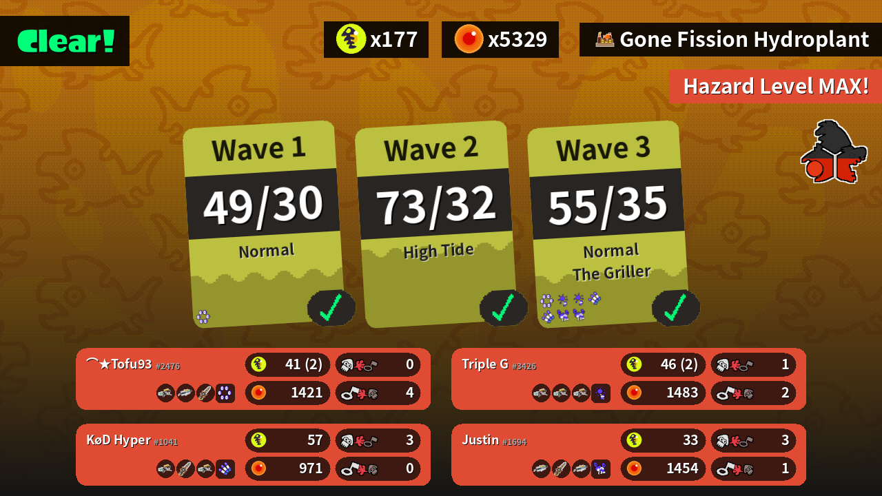 | Weapons | Grizzco Blaster Grizzco Brella Grizzco Splatana | Grizzco Blaster Grizzco Splatana Grizzco Blaster | Grizzco Blaster Grizzco Blaster Grizzco Blaster | Grizzco Brella Grizzco Splatana Grizzco Brella |