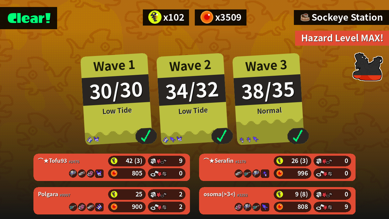 | Weapons | Clash Blaster S-BLAST '92 Dapple Dualies | S-BLAST '92 Jet Squelcher Clash Blaster | Jet Squelcher Dapple Dualies S-BLAST '92 | Dapple Dualies Clash Blaster Jet Squelcher |