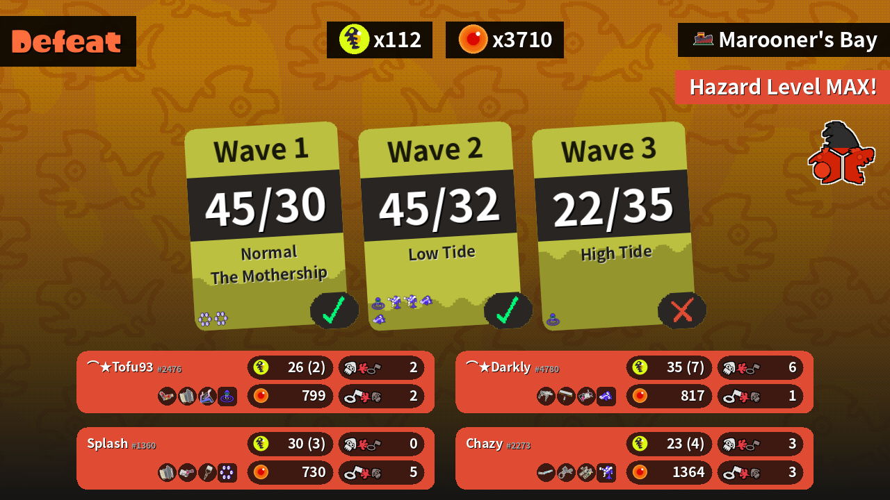 | Weapons | Hydra Splatling Sloshing Machine Slosher | Grizzco Roller Carbon Roller .52 Gal | Sloshing Machine Heavy Splatling Octobrush | Classic Squiffer Aerospray MG Grizzco Dualies |
