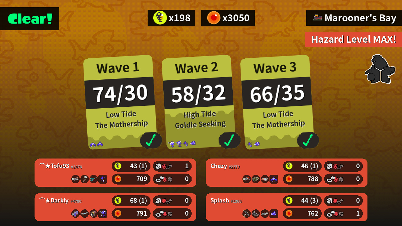 | Weapons | Blaster Octobrush Jet Squelcher | Glooga Dualies Classic Squiffer Douser Dualies FF | Range Blaster Explosher Goo Tuber | Undercover Brella Bloblobber Ballpoint Splatling |