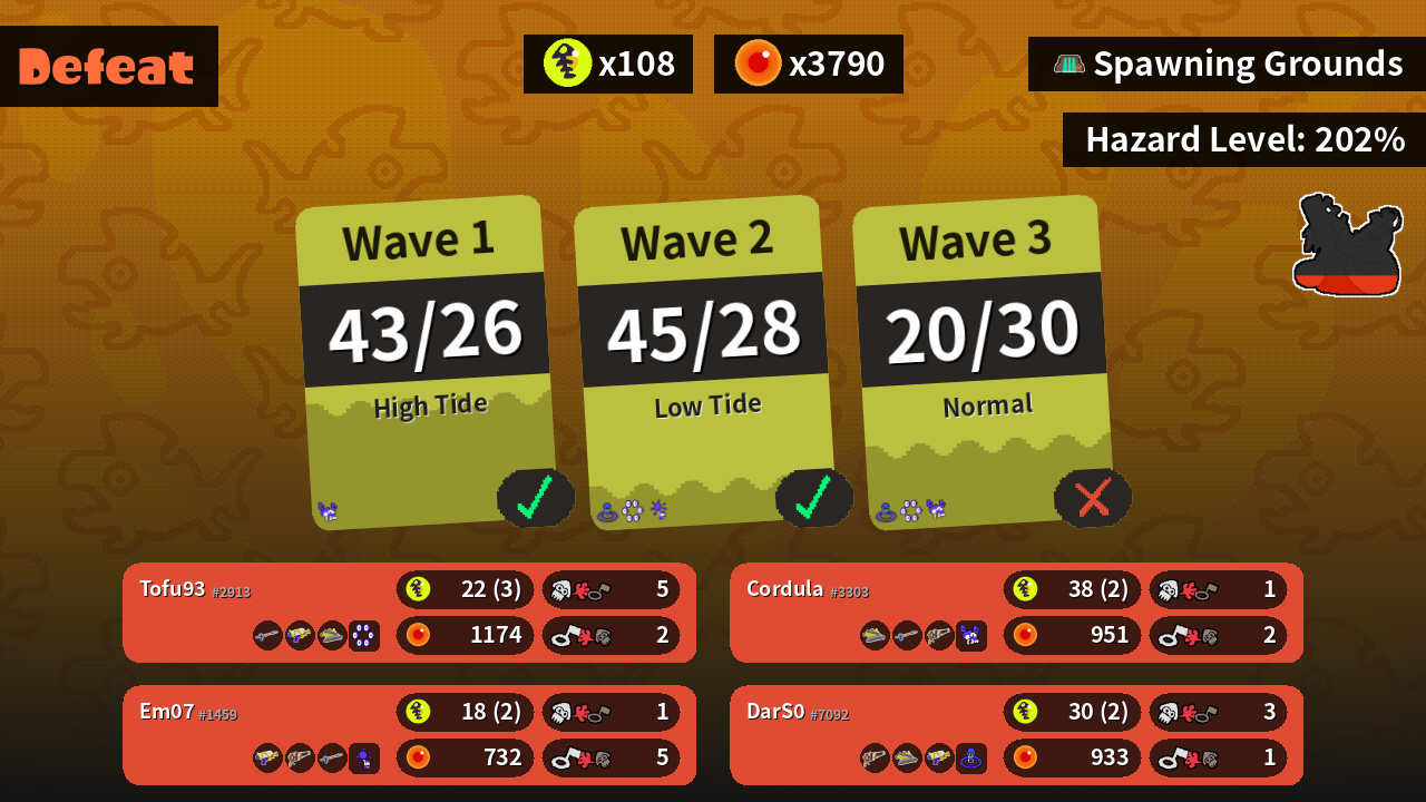 | Boss Salmonid | 19 | 16 | 13 | 6 |