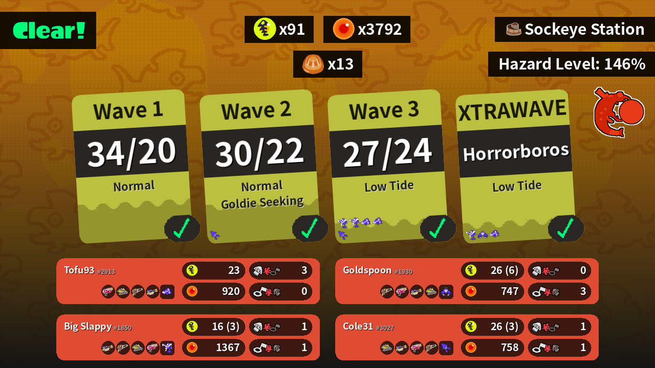 | Weapons | Rapid Blaster Dread Wringer Squeezer Mini Splatling | Dread Wringer Mini Splatling Rapid Blaster Squeezer | Squeezer Rapid Blaster Mini Splatling Dread Wringer | Mini Splatling Squeezer Dread Wringer Rapid Blaster |