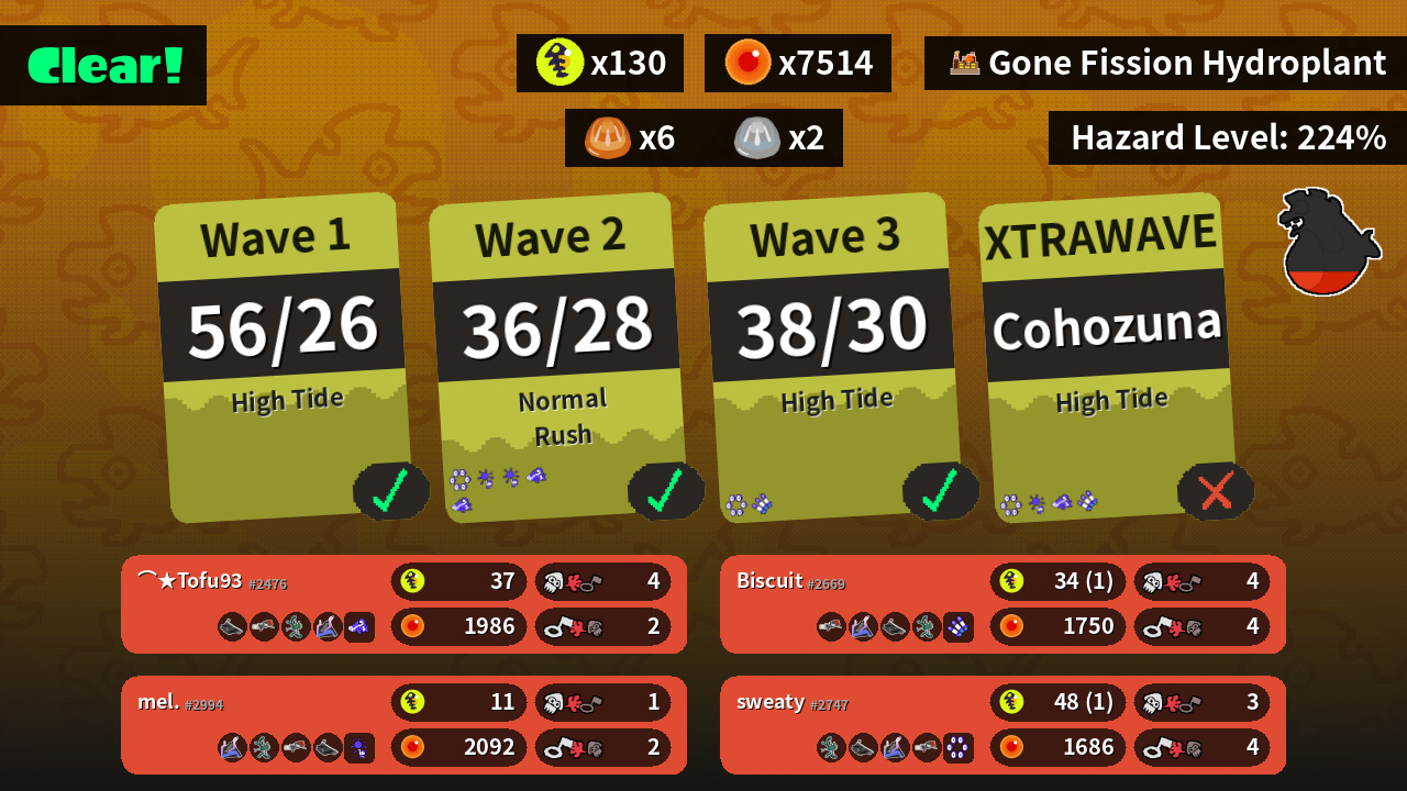 | Weapons | Bloblobber Range Blaster Wellstring V Slosher | Wellstring V Bloblobber Slosher Range Blaster | Range Blaster Slosher Bloblobber Wellstring V | Slosher Wellstring V Range Blaster Bloblobber |